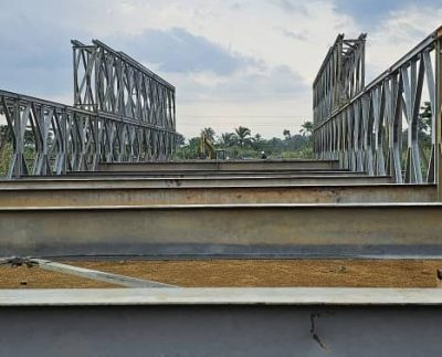 La fin du montage des éléments métalliques de cet ouvrage en construction, long de 42,53 mètres linéaires, n’attend que la…