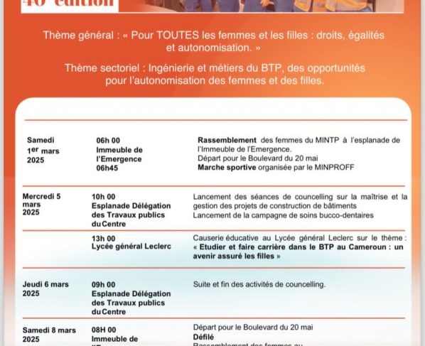 Rideau sur les activités de la 40ème édition de la Journée Internationale des Droits de la Femme au Ministère des Travaux Publics. Une cérémonie de clôture brève et enrichissante ponctuée…