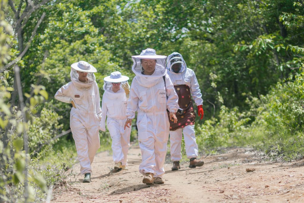 L’apiculture est une branche de l’agriculture qui consiste en l’élevage d’abeilles mellifères pour exploiter les produits de la ruche, principalement du miel mais également la cire, la gelée royale, le pollen et la propolis, voire le venin d’abeille. C’est pour découvrir cela que GUIDING HOPE a invité ses partenaires internationaux WELEDA et NOREVO, GIZ dans le but de toucher du doigt les réalités sur le terrain.